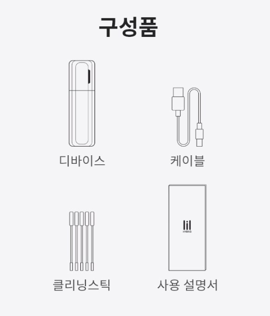 구성품은 몸체인 디바이스부터 클리닝스틱, 케이블, 사용설명서까지 간단한 구성으로 되어 있습니다.